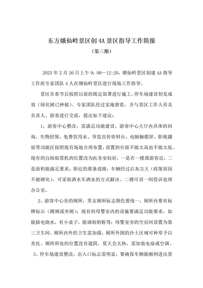 东方娥仙岭景区创4A景区指导工作简报(第三期)