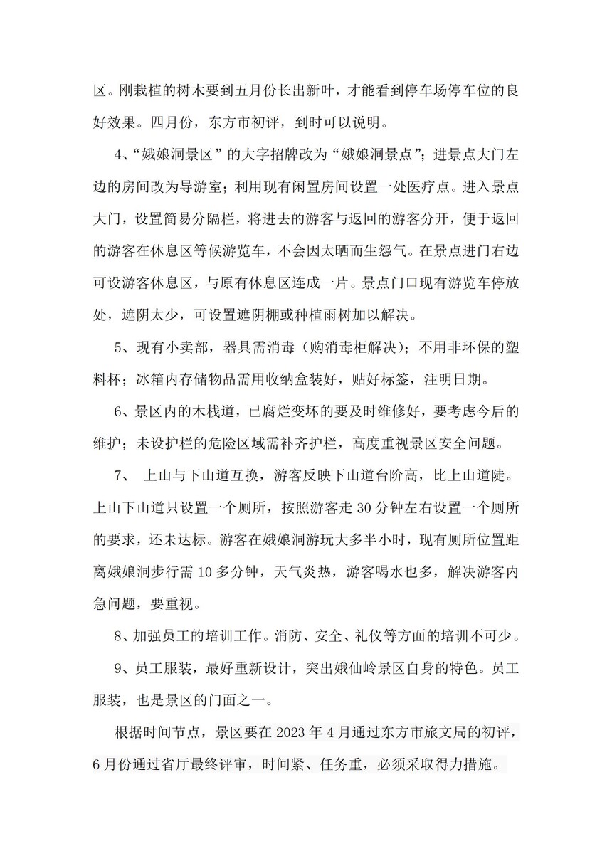 东方娥仙岭景区创4A景区指导工作简报(第四期)